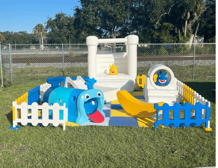 Book our soft play for your toddlers next birthday. Our soft play units can be customized to your theme. We clean and sanitize all of the product. All of our soft play equipment is for toddlers under 5 years of age. This area includes everything needed for your child's big day. 6*6 bouncer, mats for the play area, seesaw, tunnel, ball pit with balls, 2 bounce animals, and a slide. It's a cool play area for toddlers who always have a blast! (Please note that all equipment must be picked up before or by 7:30 pm)