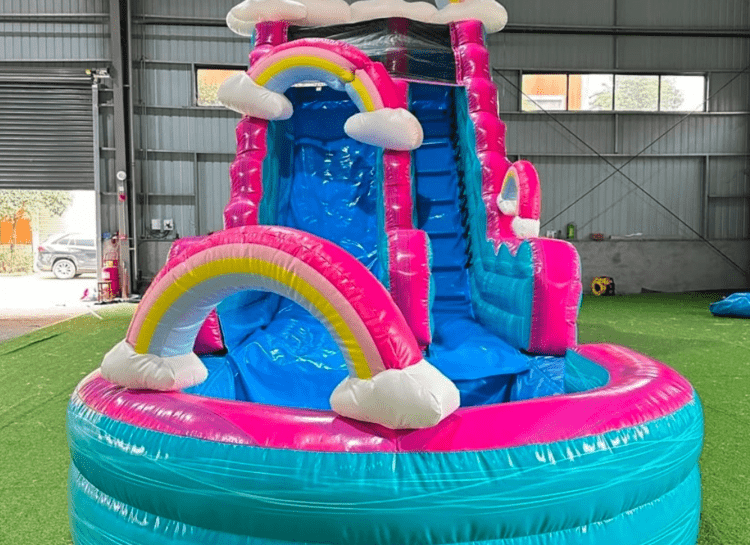 - OCCUPANCY: A maximum of 5-6 kids of equal size at one time for bounce houses, and 1 person at a time for slides is what most inflatable manufacturers recommend.